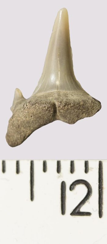 Зуб. Акула. Odontaspis venusta (Leriche, 1929). Классификация: Хордовые Chordata, Позвоночные Vertebrata, Хрящевые рыбы Chondrichthyes, Пластиножаберные Elasmobranchii