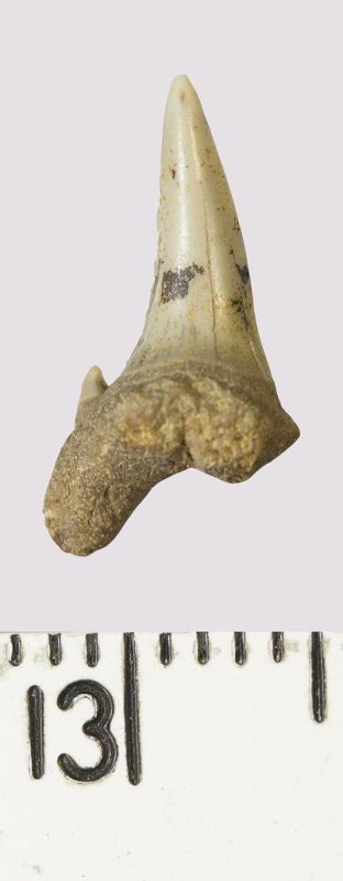 Зуб. Акула. Odontaspis venusta (Leriche, 1929). Классификация: Хордовые Chordata, Позвоночные Vertebrata, Хрящевые рыбы Chondrichthyes, Пластиножаберные Elasmobranchii