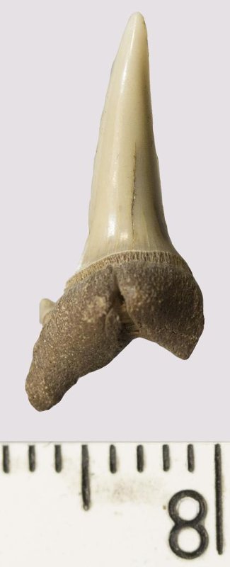 Зуб. Акула. Odontaspis venusta (Leriche, 1929). Классификация: Хордовые Chordata, Позвоночные Vertebrata, Хрящевые рыбы Chondrichthyes, Пластиножаберные Elasmobranchii