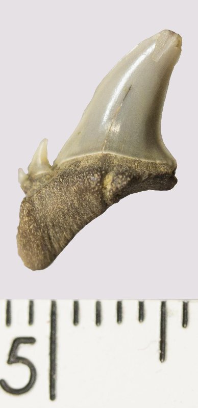 Зуб. Акула. Odontaspis venusta (Leriche, 1929). Классификация: Хордовые Chordata, Позвоночные Vertebrata, Хрящевые рыбы Chondrichthyes, Пластиножаберные Elasmobranchii