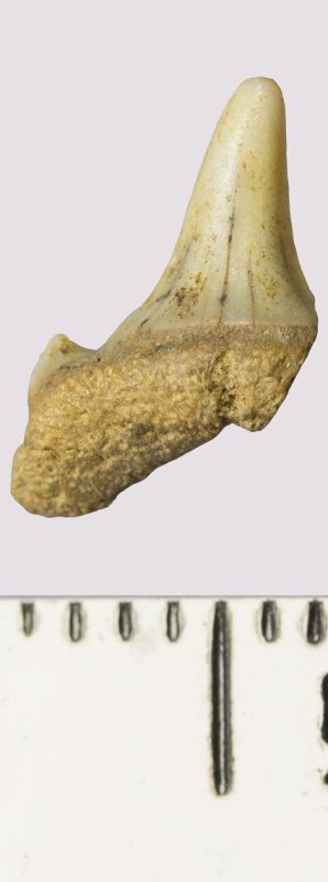 Зуб. Акула. Odontaspis venusta (Leriche, 1929). Классификация: Хордовые Chordata, Позвоночные Vertebrata, Хрящевые рыбы Chondrichthyes, Пластиножаберные Elasmobranchii