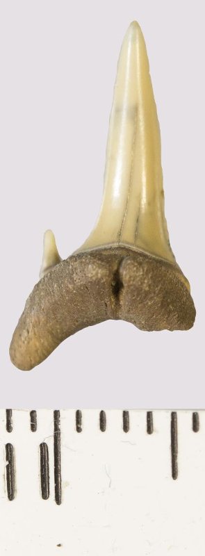 Зуб. Акула. Odontaspis venusta (Leriche, 1929). Классификация: Хордовые Chordata, Позвоночные Vertebrata, Хрящевые рыбы Chondrichthyes, Пластиножаберные Elasmobranchii