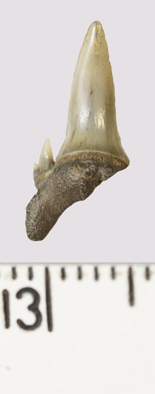 Зуб. Акула. Odontaspis venusta (Leriche, 1929). Классификация: Хордовые Chordata, Позвоночные Vertebrata, Хрящевые рыбы Chondrichthyes, Пластиножаберные Elasmobranchii