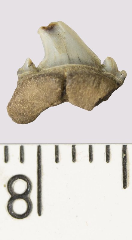 Зуб. Акула. Odontaspis venusta (Leriche, 1929). Классификация: Хордовые Chordata, Позвоночные Vertebrata, Хрящевые рыбы Chondrichthyes, Пластиножаберные Elasmobranchii