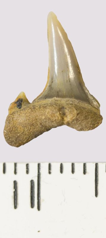 Зуб. Акула. Odontaspis venusta (Leriche, 1929). Классификация: Хордовые Chordata, Позвоночные Vertebrata, Хрящевые рыбы Chondrichthyes, Пластиножаберные Elasmobranchii