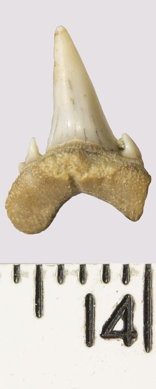 Зуб. Акула. Odontaspis venusta (Leriche, 1929). Классификация: Хордовые Chordata, Позвоночные Vertebrata, Хрящевые рыбы Chondrichthyes, Пластиножаберные Elasmobranchii