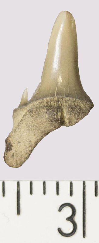 Зуб. Акула. Odontaspis venusta (Leriche, 1929). Классификация: Хордовые Chordata, Позвоночные Vertebrata, Хрящевые рыбы Chondrichthyes, Пластиножаберные Elasmobranchii