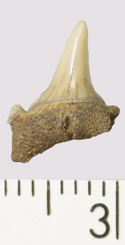 Зуб. Акула. Odontaspis venusta (Leriche, 1929). Классификация: Хордовые Chordata, Позвоночные Vertebrata, Хрящевые рыбы Chondrichthyes, Пластиножаберные Elasmobranchii