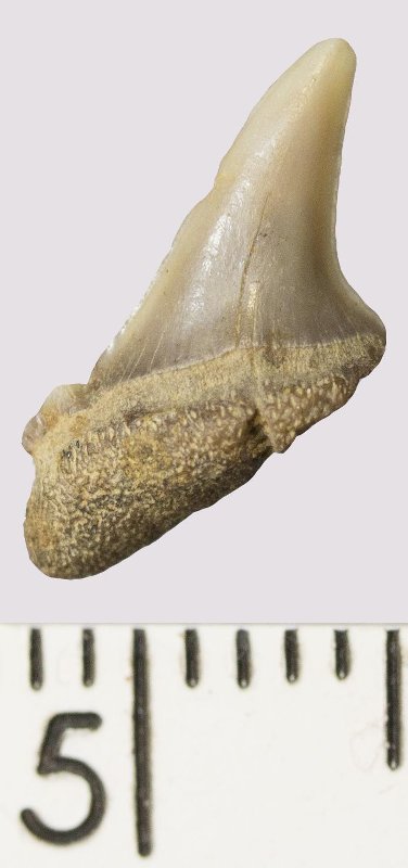 Зуб. Акула. Odontaspis venusta (Leriche, 1929). Классификация: Хордовые Chordata, Позвоночные Vertebrata, Хрящевые рыбы Chondrichthyes, Пластиножаберные Elasmobranchii