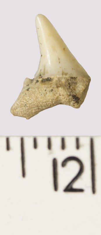 Зуб. Акула. Odontaspis venusta (Leriche, 1929). Классификация: Хордовые Chordata, Позвоночные Vertebrata, Хрящевые рыбы Chondrichthyes, Пластиножаберные Elasmobranchii
