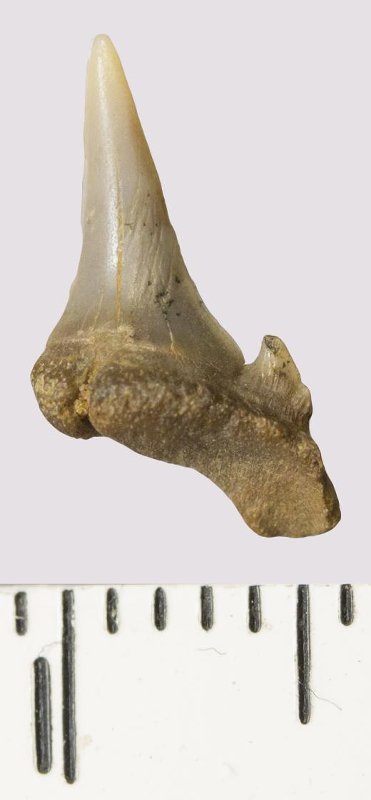 Зуб. Акула. Odontaspis venusta (Leriche, 1929). Классификация: Хордовые Chordata, Позвоночные Vertebrata, Хрящевые рыбы Chondrichthyes, Пластиножаберные Elasmobranchii