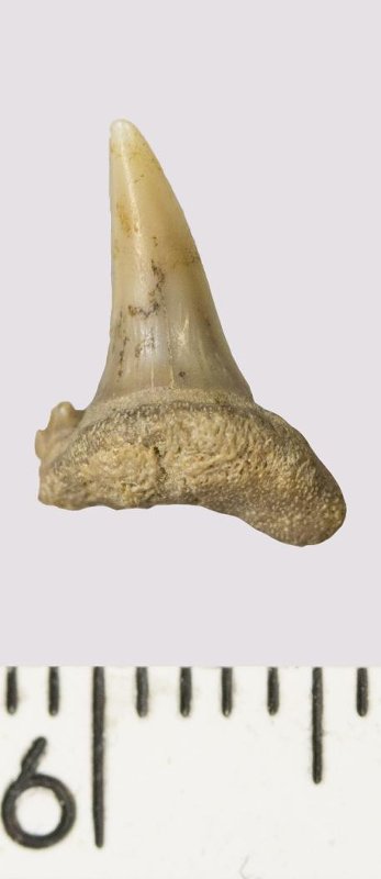 Зуб. Акула. Odontaspis venusta (Leriche, 1929). Классификация: Хордовые Chordata, Позвоночные Vertebrata, Хрящевые рыбы Chondrichthyes, Пластиножаберные Elasmobranchii