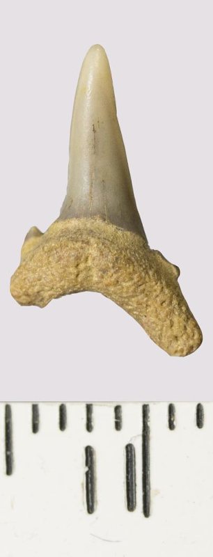 Зуб. Акула. Odontaspis venusta (Leriche, 1929). Классификация: Хордовые Chordata, Позвоночные Vertebrata, Хрящевые рыбы Chondrichthyes, Пластиножаберные Elasmobranchii