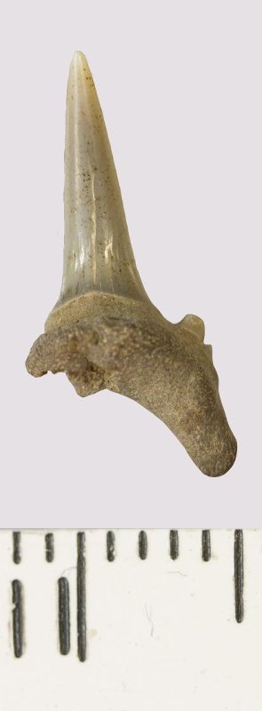 Зуб. Акула. Odontaspis venusta (Leriche, 1929). Классификация: Хордовые Chordata, Позвоночные Vertebrata, Хрящевые рыбы Chondrichthyes, Пластиножаберные Elasmobranchii