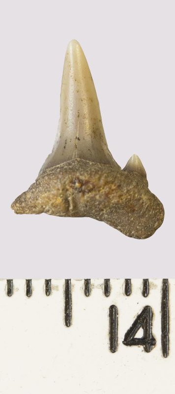 Зуб. Акула. Odontaspis venusta (Leriche, 1929). Классификация: Хордовые Chordata, Позвоночные Vertebrata, Хрящевые рыбы Chondrichthyes, Пластиножаберные Elasmobranchii