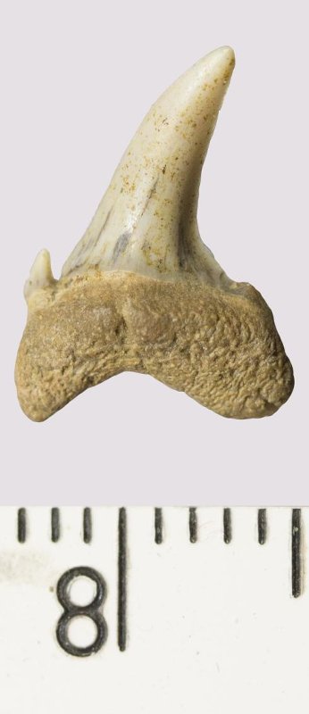 Зуб. Акула. Odontaspis venusta (Leriche, 1929). Классификация: Хордовые Chordata, Позвоночные Vertebrata, Хрящевые рыбы Chondrichthyes, Пластиножаберные Elasmobranchii