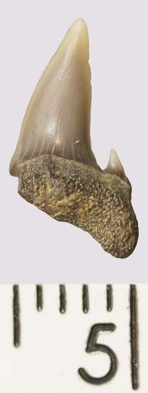 Зуб. Акула. Odontaspis venusta (Leriche, 1929). Классификация: Хордовые Chordata, Позвоночные Vertebrata, Хрящевые рыбы Chondrichthyes, Пластиножаберные Elasmobranchii
