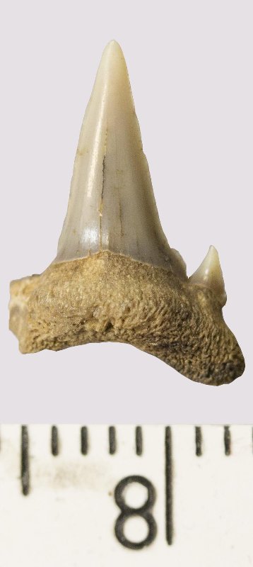 Зуб. Акула. Odontaspis venusta (Leriche, 1929). Классификация: Хордовые Chordata, Позвоночные Vertebrata, Хрящевые рыбы Chondrichthyes, Пластиножаберные Elasmobranchii