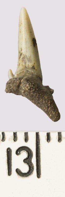 Зуб. Акула. Odontaspis venusta (Leriche, 1929). Классификация: Хордовые Chordata, Позвоночные Vertebrata, Хрящевые рыбы Chondrichthyes, Пластиножаберные Elasmobranchii