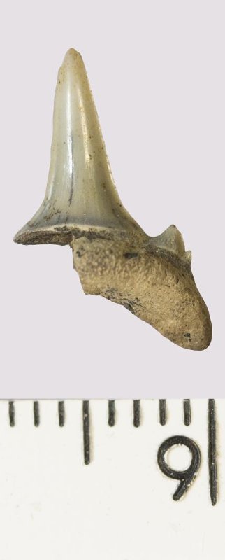 Зуб. Акула. Odontaspis venusta (Leriche, 1929). Классификация: Хордовые Chordata, Позвоночные Vertebrata, Хрящевые рыбы Chondrichthyes, Пластиножаберные Elasmobranchii