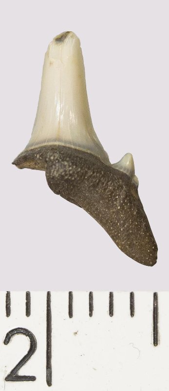 Зуб. Акула. Odontaspis venusta (Leriche, 1929). Классификация: Хордовые Chordata, Позвоночные Vertebrata, Хрящевые рыбы Chondrichthyes, Пластиножаберные Elasmobranchii