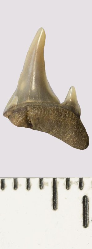 Зуб. Акула. Odontaspis venusta (Leriche, 1929). Классификация: Хордовые Chordata, Позвоночные Vertebrata, Хрящевые рыбы Chondrichthyes, Пластиножаберные Elasmobranchii