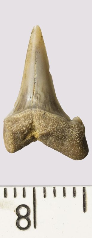 Зуб. Акула. Odontaspis venusta (Leriche, 1929). Классификация: Хордовые Chordata, Позвоночные Vertebrata, Хрящевые рыбы Chondrichthyes, Пластиножаберные Elasmobranchii