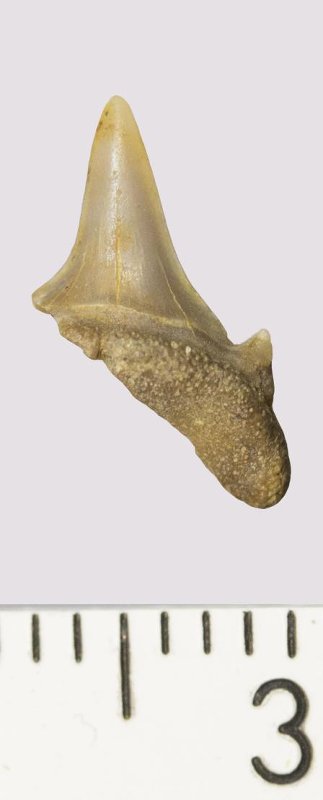 Зуб. Акула. Odontaspis venusta (Leriche, 1929). Классификация: Хордовые Chordata, Позвоночные Vertebrata, Хрящевые рыбы Chondrichthyes, Пластиножаберные Elasmobranchii