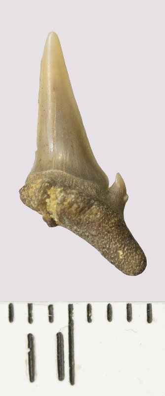 Зуб. Акула. Odontaspis venusta (Leriche, 1929). Классификация: Хордовые Chordata, Позвоночные Vertebrata, Хрящевые рыбы Chondrichthyes, Пластиножаберные Elasmobranchii