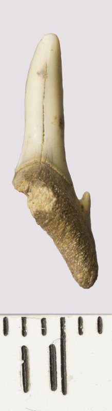 Зуб. Акула. Odontaspis venusta (Leriche, 1929). Классификация: Хордовые Chordata, Позвоночные Vertebrata, Хрящевые рыбы Chondrichthyes, Пластиножаберные Elasmobranchii