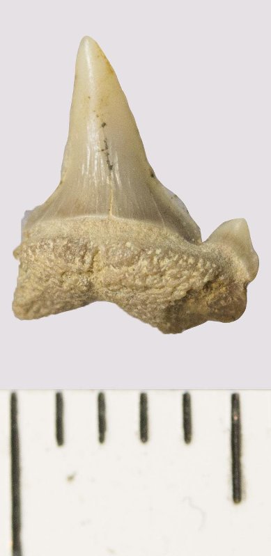 Зуб. Акула. Odontaspis venusta (Leriche, 1929). Классификация: Хордовые Chordata, Позвоночные Vertebrata, Хрящевые рыбы Chondrichthyes, Пластиножаберные Elasmobranchii