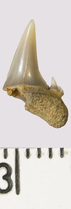 Зуб. Акула. Odontaspis venusta (Leriche, 1929). Классификация: Хордовые Chordata, Позвоночные Vertebrata, Хрящевые рыбы Chondrichthyes, Пластиножаберные Elasmobranchii