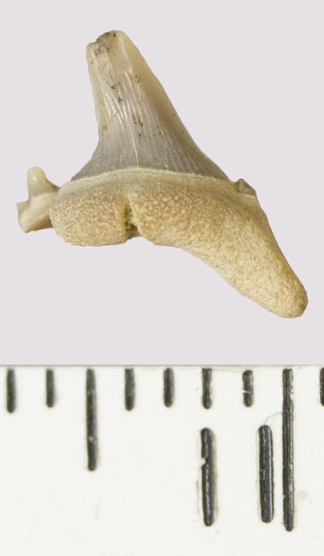 Зуб. Акула. Odontaspis venusta (Leriche, 1929). Классификация: Хордовые Chordata, Позвоночные Vertebrata, Хрящевые рыбы Chondrichthyes, Пластиножаберные Elasmobranchii