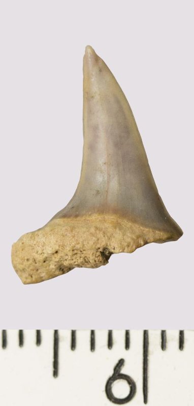 Зуб. Акула. Odontaspis venusta (Leriche, 1929). Классификация: Хордовые Chordata, Позвоночные Vertebrata, Хрящевые рыбы Chondrichthyes, Пластиножаберные Elasmobranchii
