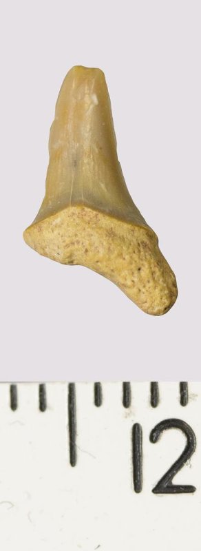 Зуб. Акула. Odontaspis venusta (Leriche, 1929). Классификация: Хордовые Chordata, Позвоночные Vertebrata, Хрящевые рыбы Chondrichthyes, Пластиножаберные Elasmobranchii