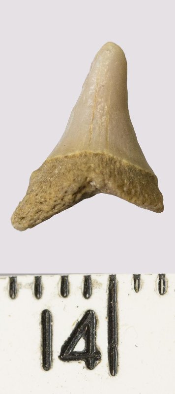 Зуб. Акула. Odontaspis venusta (Leriche, 1929). Классификация: Хордовые Chordata, Позвоночные Vertebrata, Хрящевые рыбы Chondrichthyes, Пластиножаберные Elasmobranchii