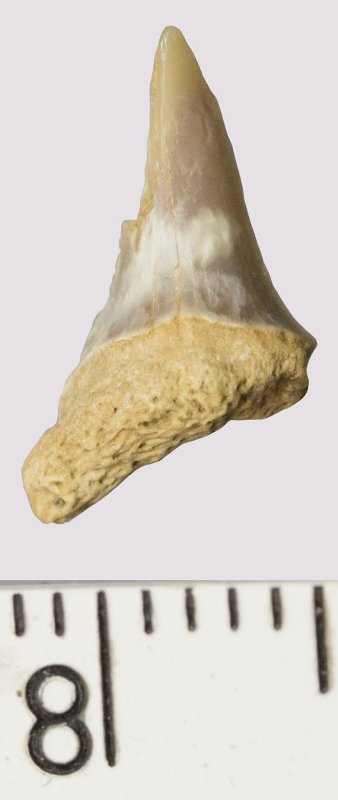 Зуб. Акула. Odontaspis venusta (Leriche, 1929). Классификация: Хордовые Chordata, Позвоночные Vertebrata, Хрящевые рыбы Chondrichthyes, Пластиножаберные Elasmobranchii