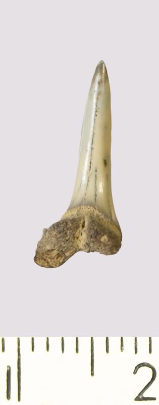 Зуб. Акула. Odontaspis venusta (Leriche, 1929). Классификация: Хордовые Chordata, Позвоночные Vertebrata, Хрящевые рыбы Chondrichthyes, Пластиножаберные Elasmobranchii