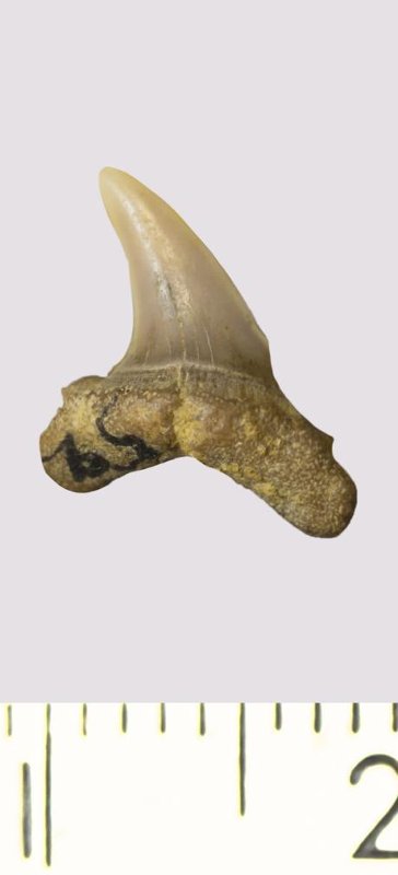 Зуб. Акула. Odontaspis venusta (Leriche, 1929). Классификация: Хордовые Chordata, Позвоночные Vertebrata, Хрящевые рыбы Chondrichthyes, Пластиножаберные Elasmobranchii