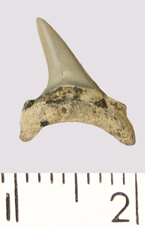 Зуб. Акула. Odontaspis venusta (Leriche, 1929). Классификация: Хордовые Chordata, Позвоночные Vertebrata, Хрящевые рыбы Chondrichthyes, Пластиножаберные Elasmobranchii