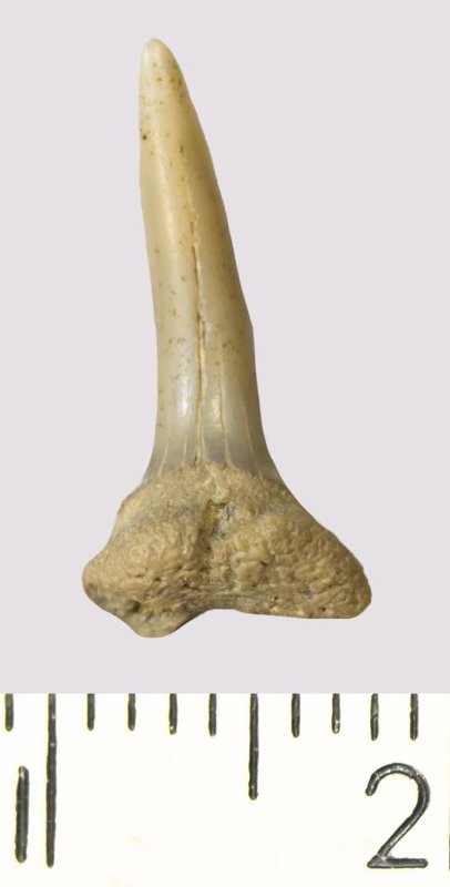 Зуб. Акула. Odontaspis venusta (Leriche, 1929). Классификация: Хордовые Chordata, Позвоночные Vertebrata, Хрящевые рыбы Chondrichthyes, Пластиножаберные Elasmobranchii