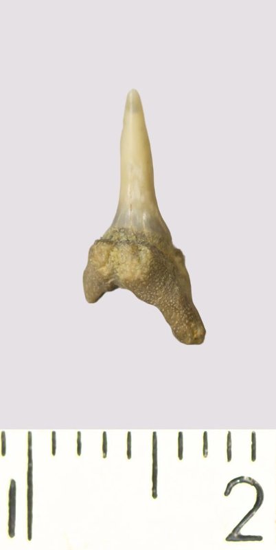 Зуб. Акула. Odontaspis venusta (Leriche, 1929). Классификация: Хордовые Chordata, Позвоночные Vertebrata, Хрящевые рыбы Chondrichthyes, Пластиножаберные Elasmobranchii