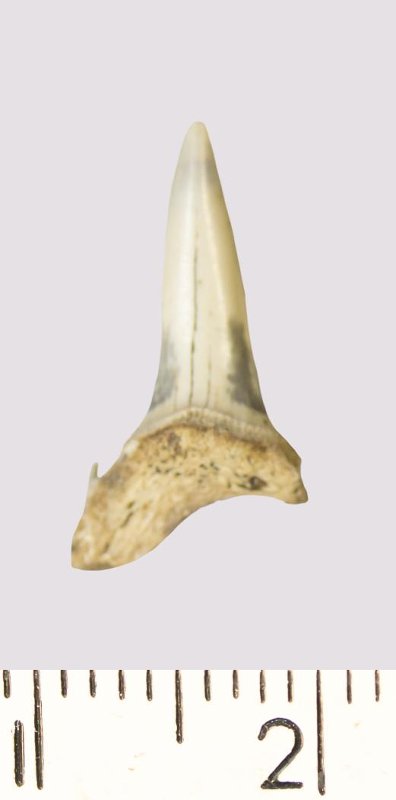 Зуб (фрагмент). Акула. Odontaspis venusta (Leriche, 1929). Классификация: Хордовые Chordata, Позвоночные Vertebrata, Хрящевые рыбы Chondrichthyes, Пластиножаберные Elasmobranchii