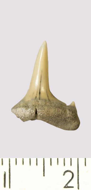 Зуб. Акула. Odontaspis venusta (Leriche, 1929). Классификация: Хордовые Chordata, Позвоночные Vertebrata, Хрящевые рыбы Chondrichthyes, Пластиножаберные Elasmobranchii