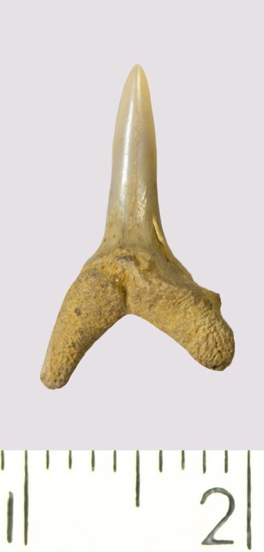 Зуб. Акула. Odontaspis venusta (Leriche, 1929). Классификация: Хордовые Chordata, Позвоночные Vertebrata, Хрящевые рыбы Chondrichthyes, Пластиножаберные Elasmobranchii