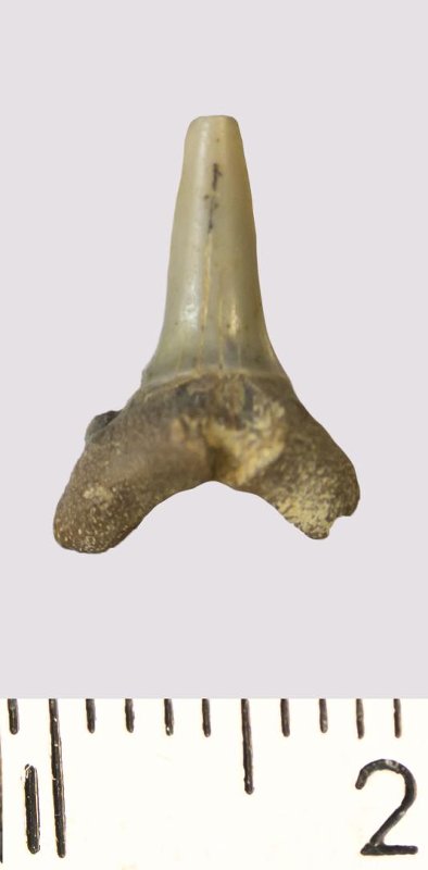 Зуб. Акула. Odontaspis venusta (Leriche, 1929). Классификация: Хордовые Chordata, Позвоночные Vertebrata, Хрящевые рыбы Chondrichthyes, Пластиножаберные Elasmobranchii