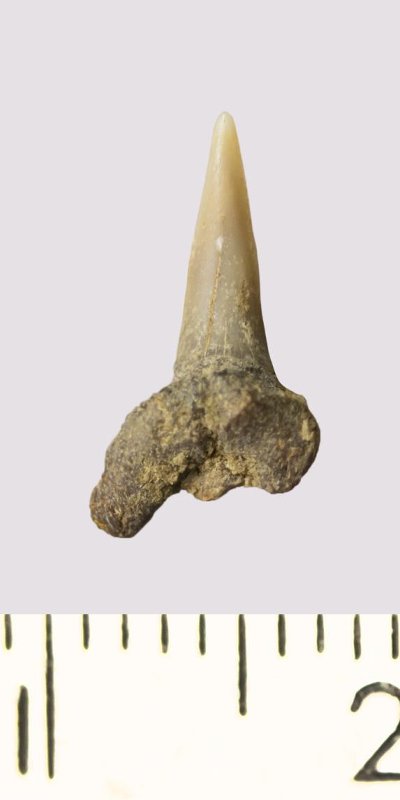 Зуб. Акула. Odontaspis venusta (Leriche, 1929). Классификация: Хордовые Chordata, Позвоночные Vertebrata, Хрящевые рыбы Chondrichthyes, Пластиножаберные Elasmobranchii