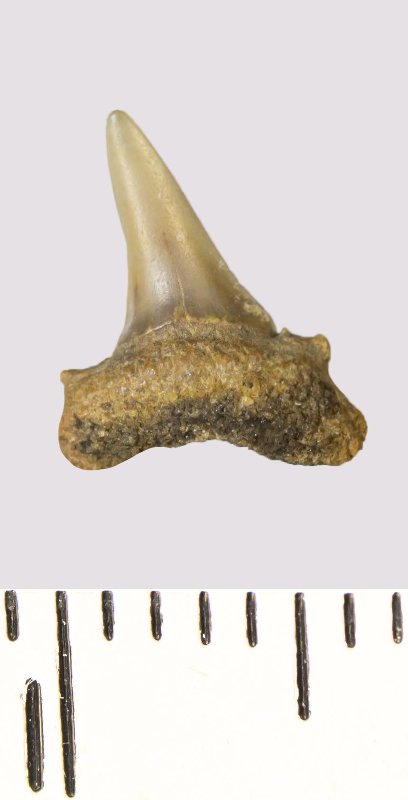 Зуб. Акула. Odontaspis venusta (Leriche, 1929). Классификация: Хордовые Chordata, Позвоночные Vertebrata, Хрящевые рыбы Chondrichthyes, Пластиножаберные Elasmobranchii