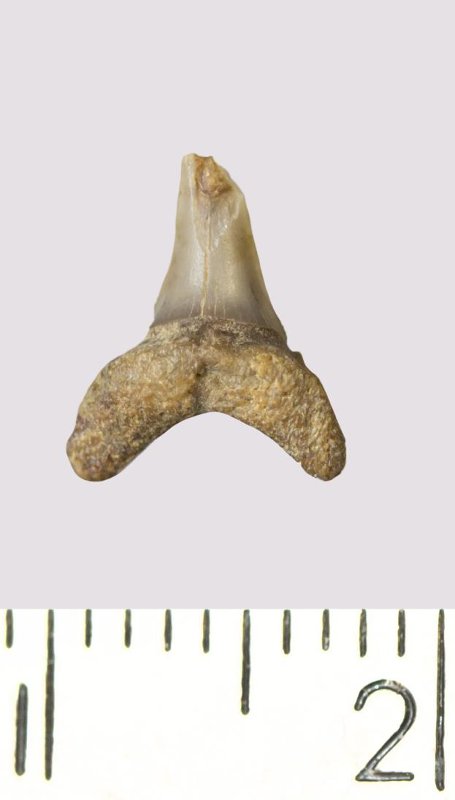Зуб. Акула. Odontaspis venusta (Leriche, 1929). Классификация: Хордовые Chordata, Позвоночные Vertebrata, Хрящевые рыбы Chondrichthyes, Пластиножаберные Elasmobranchii