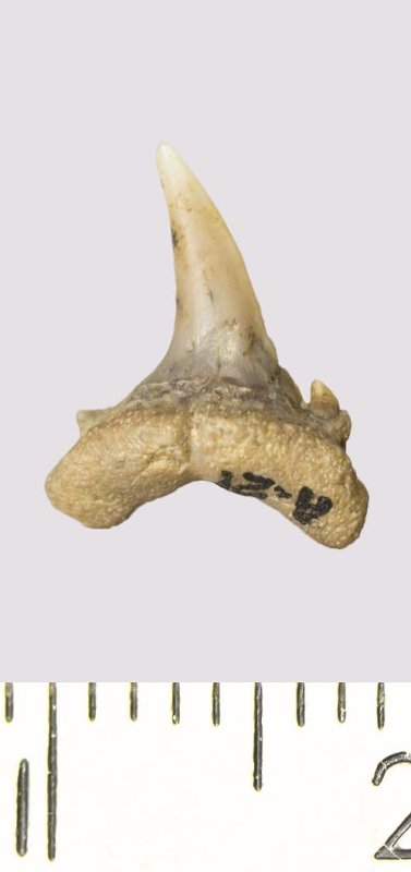 Зуб. Акула. Odontaspis venusta (Leriche, 1929). Классификация: Хордовые Chordata, Позвоночные Vertebrata, Хрящевые рыбы Chondrichthyes, Пластиножаберные Elasmobranchii